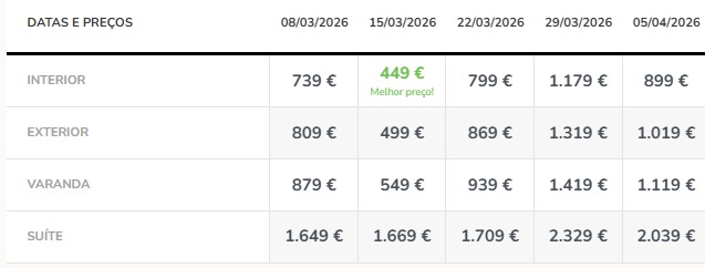 Cruzeiro 10 noites saída de Lisboa