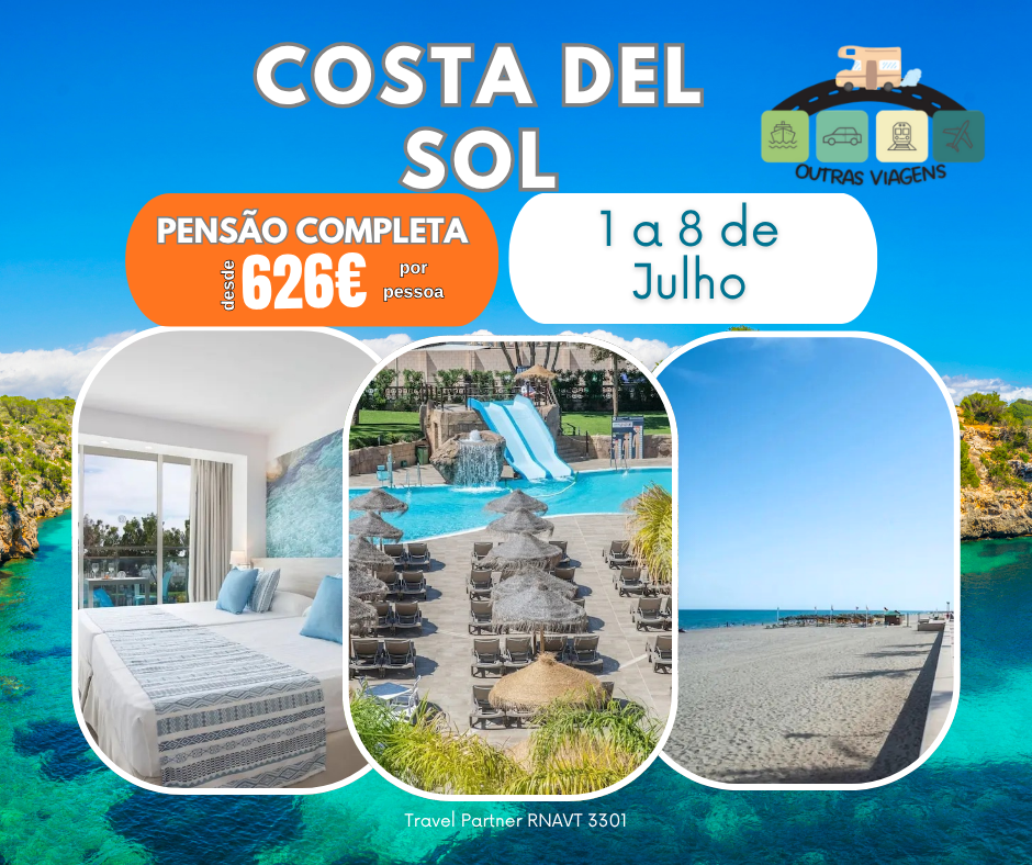 Esta opção na Costa del Sol, tem Praia, uma piscina incrivel, alojameento 4* em regime de pensão completa (pequeno-almoço, almoço e jantar). Aproveita a Campanha summer 26 e reserva a tua viagem de verão